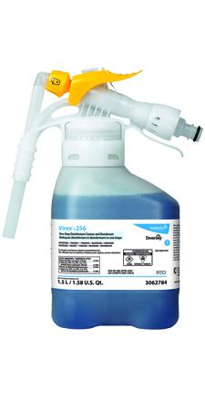 Utilice VirexTM II 256 Limpiador desinfectante y desodorante de un solo paso para limpiar tocadores, fregaderos, pisos y las paredes del lavabo.