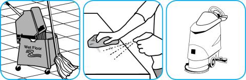 Avec le distributeur, remplissez le seau, le flacon pulvérisateur ou la décapeuse automatique. Appliquez le produit sur les surfaces devant être nettoyées. Si le produit est utilisé dans une décapeuse automatique, passez une vadrouille derrière la machine pour ramasser les surplus de solution. Laissez sécher.